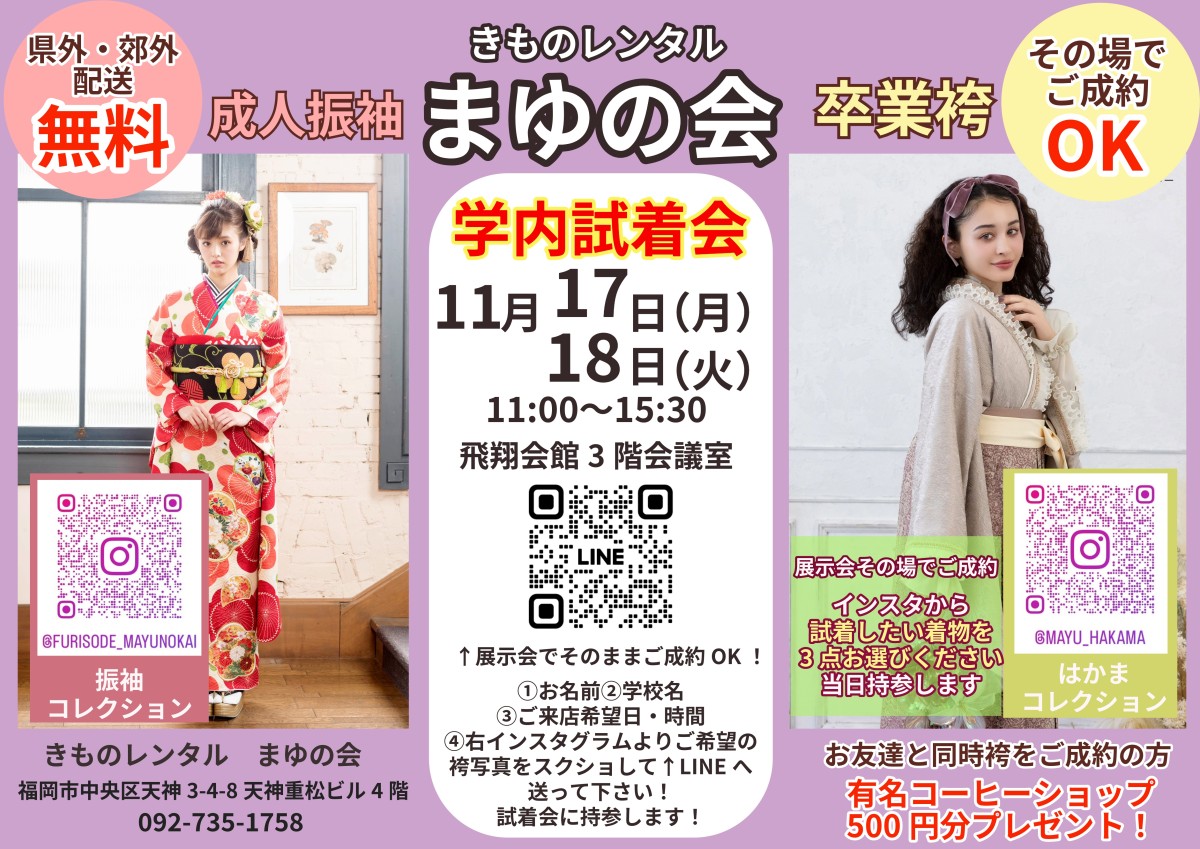 【学内開催】振袖・卒業袴展示会のお知らせ(まゆの会)