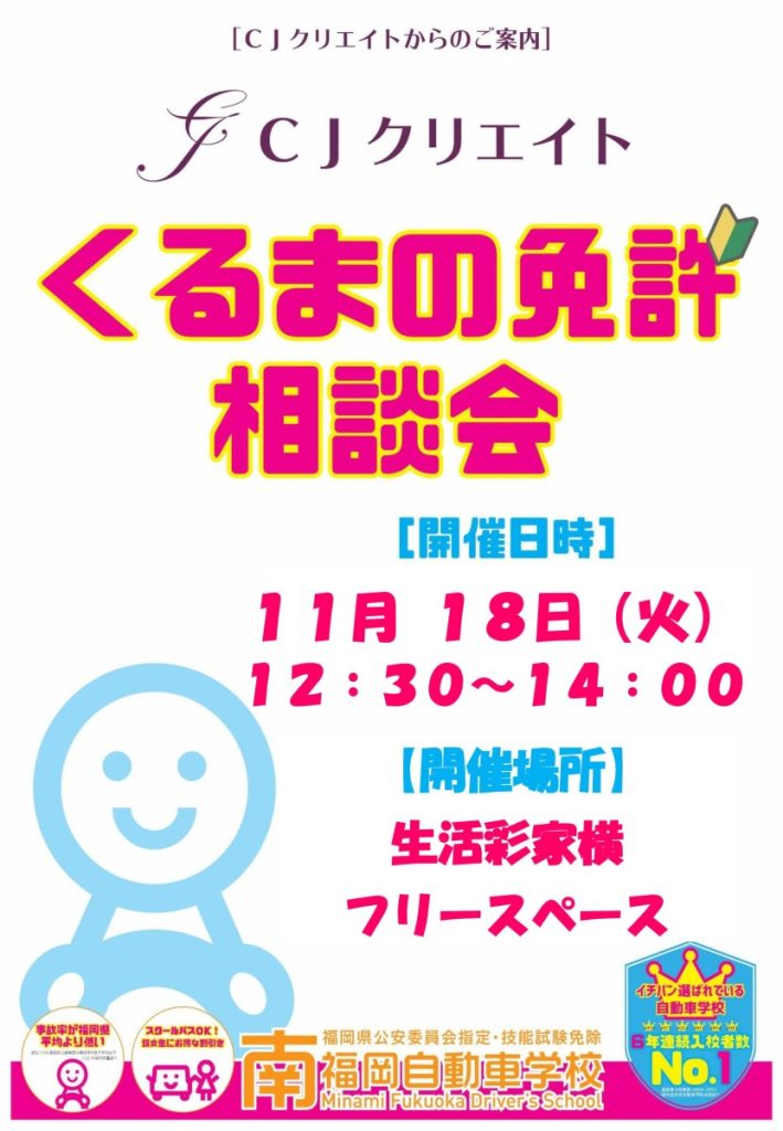 (11月18日)自動車免許相談会<南福岡自動車学校>