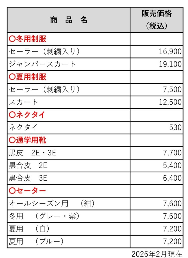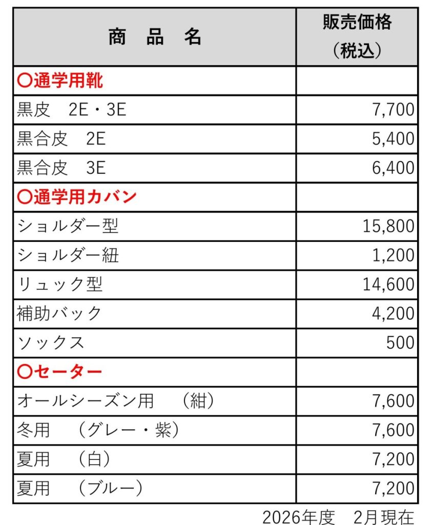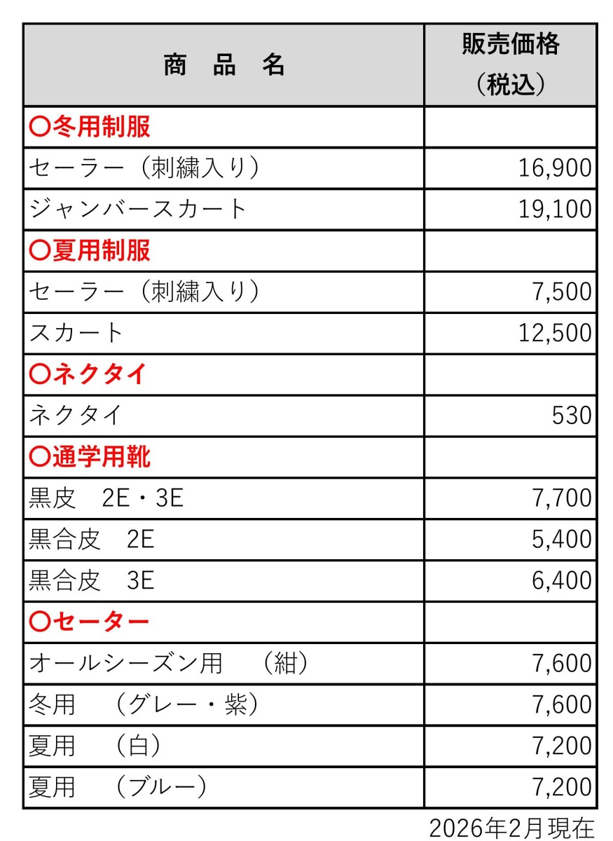 制服・学用品販売について