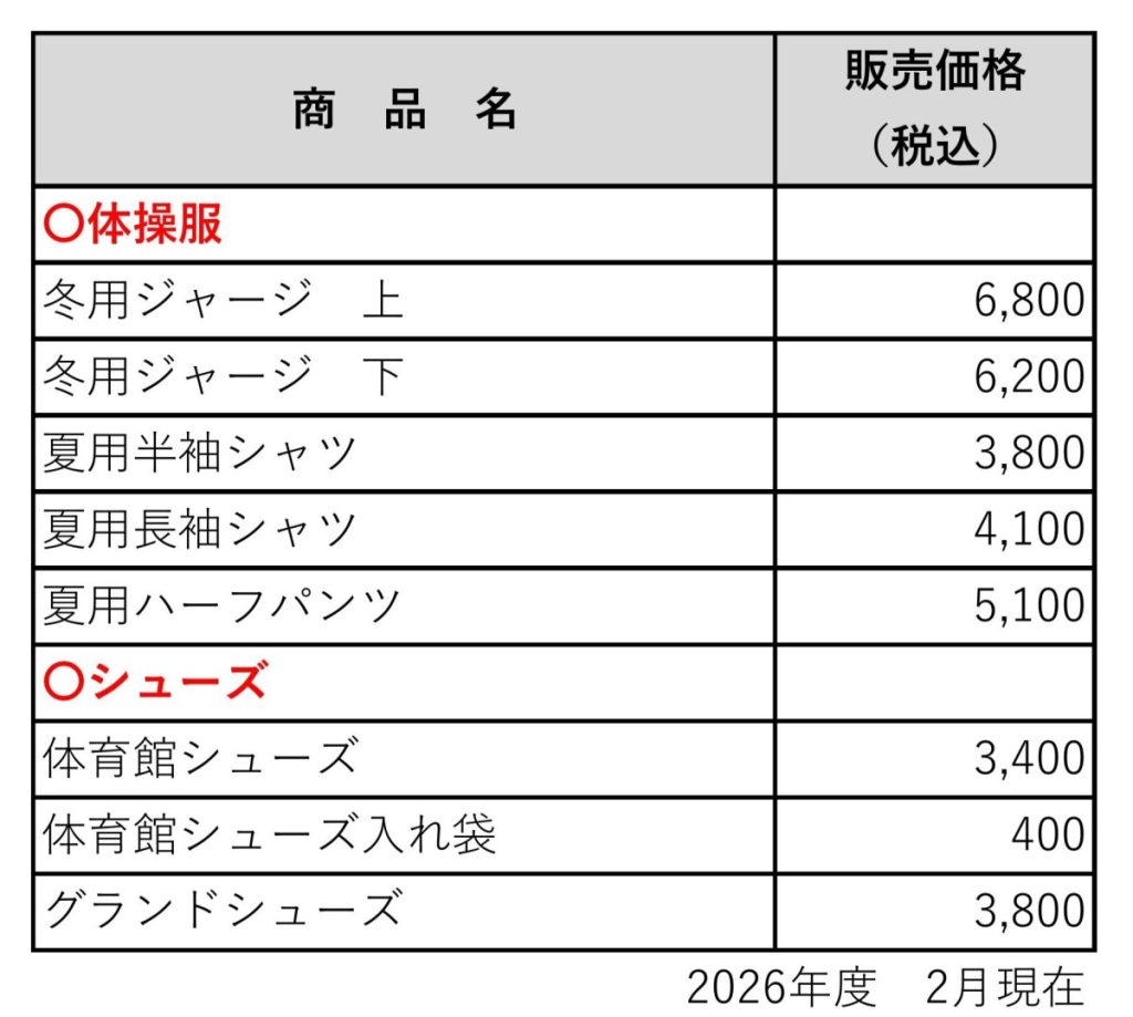 ※体操服は購買部にございます申込用紙にご記入頂き、その後メーカーに発注致します。(名入れの為、お名前は正確にご記入ください。)